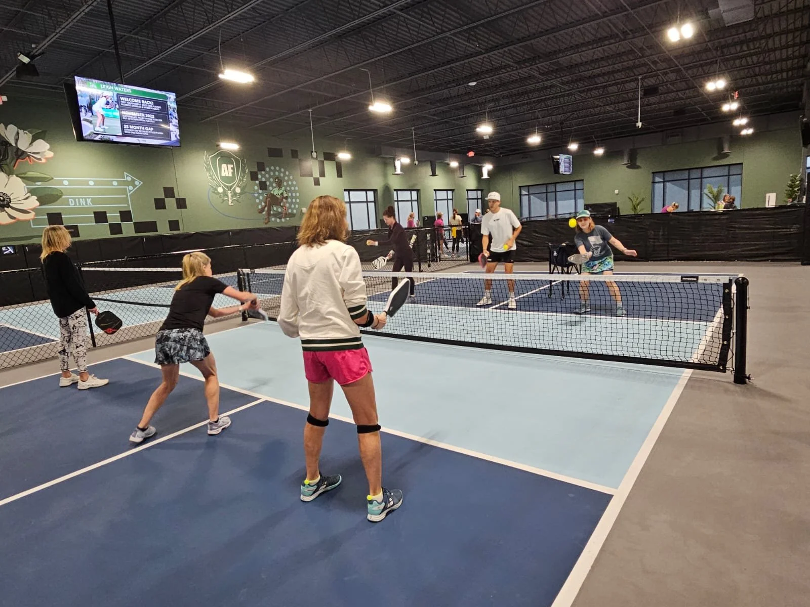 Instant Replays: Relive every incredible rally with our unique replay system. Each indoor pickleball court features a big screen that captures and displays the last 30 seconds of action, letting players and spectators celebrate the moment together.